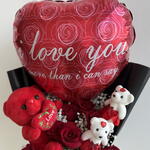 teddy bear 20cm - 1 pcs teddy bear small - 2 pcs red roses - 9 pcs foil balloon - 1 pcs