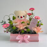 A refined women’s gift featuring an original Guess Eau de Parfum (75ml), soft pink floral arrangement, and a plush teddy bear—beautifully styled in a keepsake box. Designed for Valentine’s Day, birthdays, and moments that deserve something truly special. This charming set features a cute teddy bear, symbolizing comfort and affection, paired with 4 vibrant pink gerberas and 2 delicate pink roses arranged with soft fillers for a fresh, graceful look. The highlight of the hamper is the Guess Pink Eau de Parfum (75ML) — a chic, feminine fragrance loved for its floral sweetness and modern elegance. ✓ Guess Pink Eau de Parfum – 75ML ✓ Teddy bear – soft cuddly ✓ 4 pink gerberas + 2 pink roses with fillers ✓ Stylish wooden gift box ✓ Perfect for birthdays, anniversaries, romantic surprises special occasions ✓ Same-day delivery across Dubai JVC “Surprise her with elegance — order this Guess Pink Gift Hamper today!” “A fragrance, flowers love in one box — shop this luxury hamper now!” “Make her feel truly special — send this beautiful wooden gift set today!”