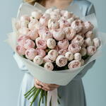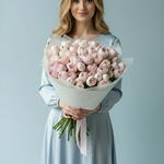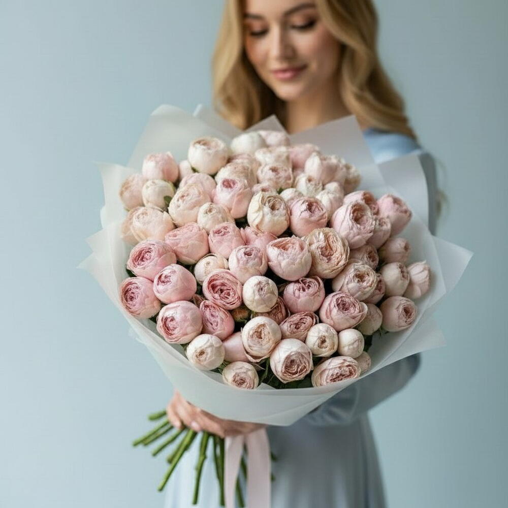 A bouquet that captures the beauty of a quiet morning. Soft blush roses and peony roses, hand-tied with care and wrapped in matte white paper. Gentle, feminine, and timeless — perfect for love, gratitude, or a tender surprise. Fast delivery across Dubai