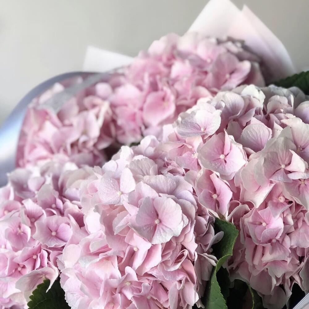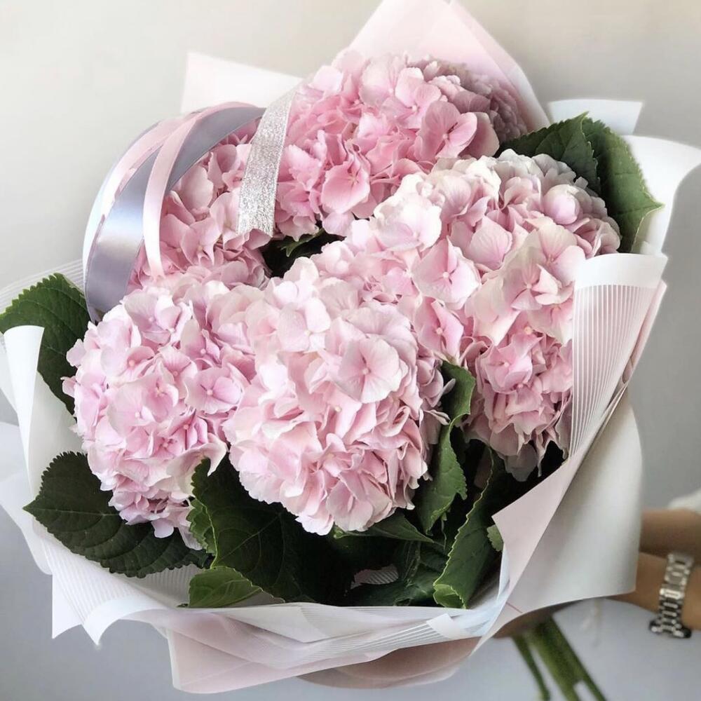 Hydrangea is one of the unique and favorite flowers we love to add in our bouquets. Here is bouquet of tender hydrangeas color of which you can choose. It can be sensual pink, white, blue, red or green