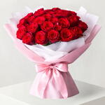 Tender Touch _ Valentine 51 Red Rose Bouquet in pink Rapping