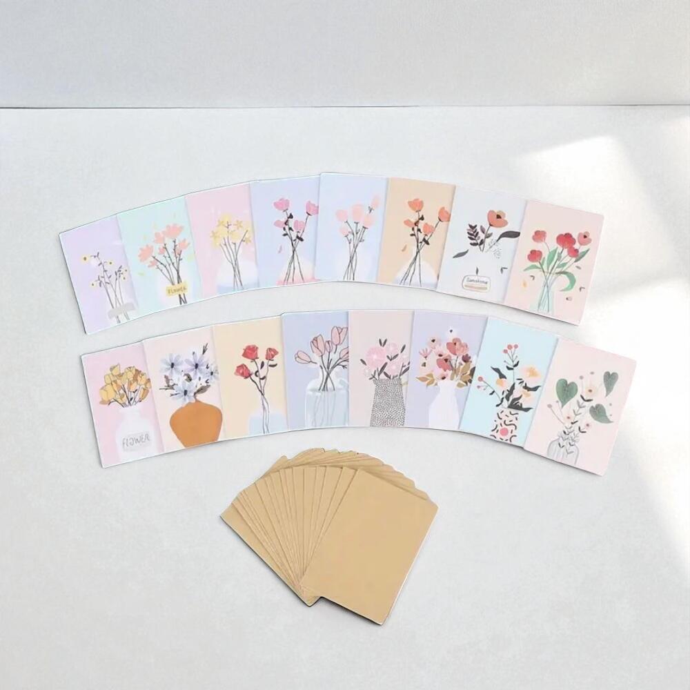 Thank You Floral Mini Postcards Set – 16pcs with Envelopes