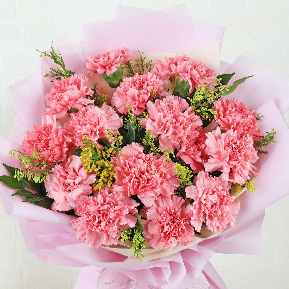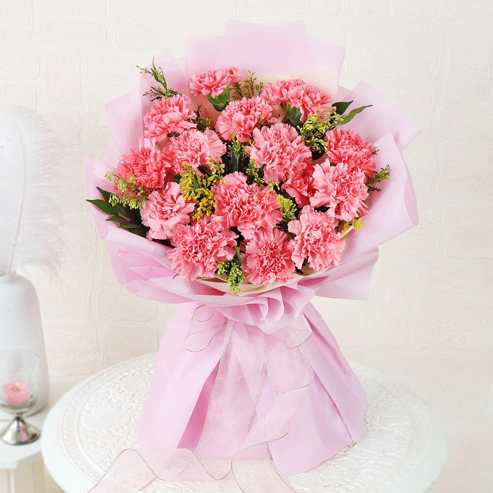 The Carnation Everglow Bouquet is freshly picked and hand-tied with love along with solidago and kamini blooms. Type of Flowers: Carnations ,Solidago Colour : Assorted