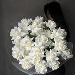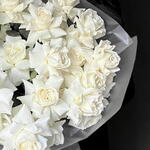 Embrace the art of contemporary romance with The Lumina Reflex bouquet. This is not a traditional arrangement; it is a sculptural statement, designed for the modern aesthetic. At the heart of its design are pristine white roses, masterfully styled in the reflex technique. Each bloom is a masterpiece, with its velvety outer petals gently curved back to reveal the delicate heart of the flower.