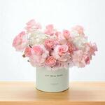 pink hydrangeas - 2 pcs white hydrangeas - 2 pcs experance roses - 9 pcs pink juleta - 5 pcs