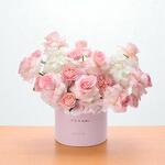 pink hydrangeas - 2 pcs white hydrangeas - 2 pcs esperance roses - 9 pcs pink julieta - 5 pcs