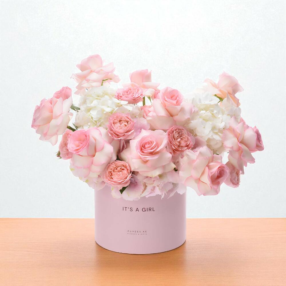 Experience the captivating elegance of the The Pink Taffy Its a Girl Box, a luxurious floral occasion box designed to celebrate the arrival of a newborn girl. Expertly crafted with dimensions of Width - 55 and Height - 43, this box features the word Its a Girl elegantly inscribed, that radiates joy and tenderness.