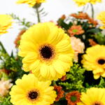 solidago yellow - 5 pcs carnation peach - 6 pcs germini yellow - 14 pcs santini orange - 5 pcs