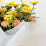 Brighten someone’s day with the ultimate symbol of joy! This vibrant hand-tied bouquet features premium Yellow Gerbera Daisies as the star of the show, complemented by soft Peach Carnations and delicate filler greens. Wrapped in a sophisticated white textured mesh and finished with our signature baaqat ribbon, this arrangement is perfect for birthdays, get well soon wishes, or simply to celebrate a friendship. Its warm, sunny palette brings a touch of natures light into any room. Primary Flowers: Yellow Gerbera Daisies Secondary Flowers: Peach Carnations, Green Ruscus/Solidago fillers Style: Modern, Round Hand-Tied Occasions: Birthday, Anniversary, Graduation, or Thank You Flower Care : To ensure your baaqat bouquet stays fresh and vibrant for as long as possible, please follow these tips: 1- Trim the Stems: Cut about 2cm off the bottom of each stem at a 45-degree angle before placing them in a vase. 2- Fresh Water: Use a clean vase with room-temperature water. Gerbera daisies prefer shallow water (about 5-10cm) to prevent stem rot. 3- Clean the Vase: Change the water every 2 days and give the stems a fresh trim each time. 4- Avoid Heat: Keep the flowers in a cool spot away from direct sunlight, air conditioning vents, and ripening fruit (which releases gases that make flowers wilt faster). 5- Remove Wilted Petals: If a specific flower begins to fade, remove it to keep the rest of the arrangement healthy.
