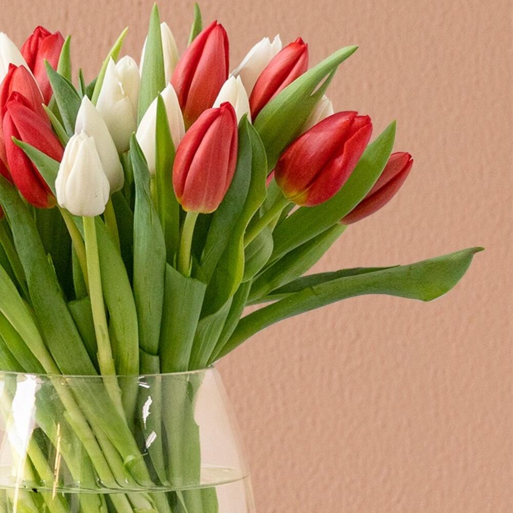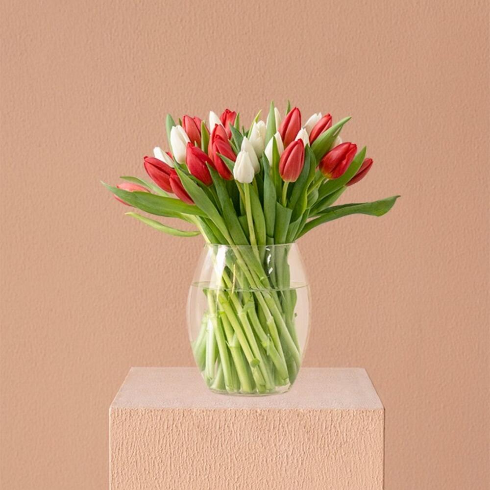 red tulips - 20 pcs glass vase - 1 pcs white tulips - 20 pcs