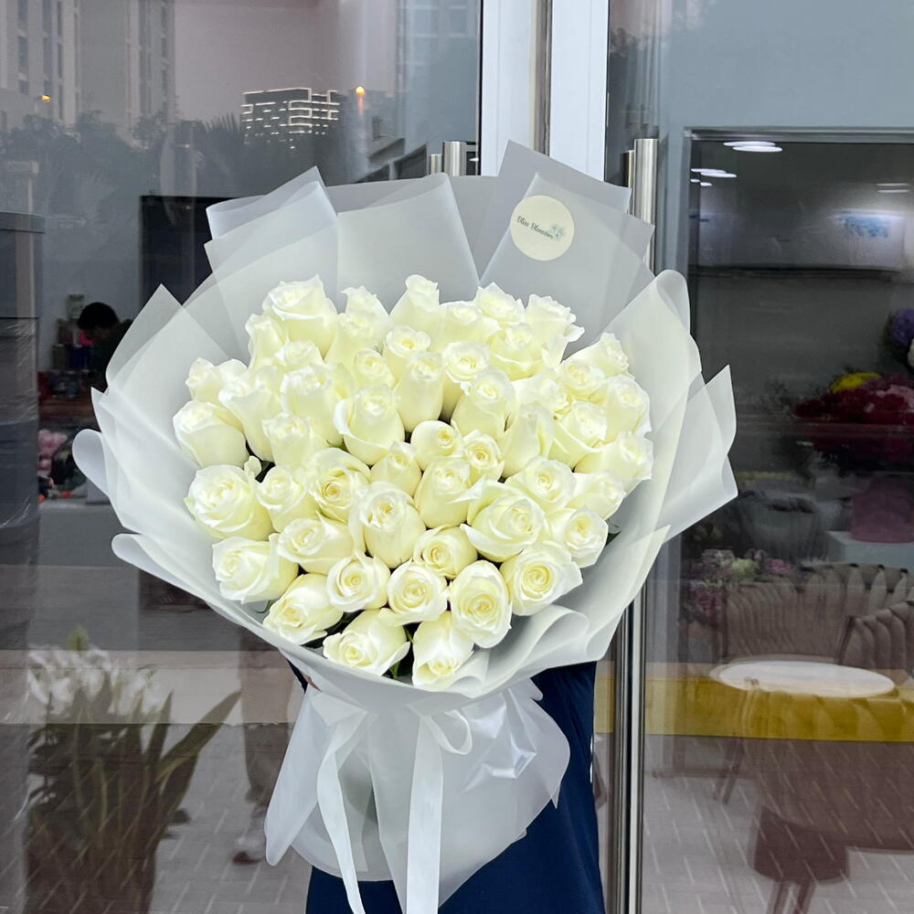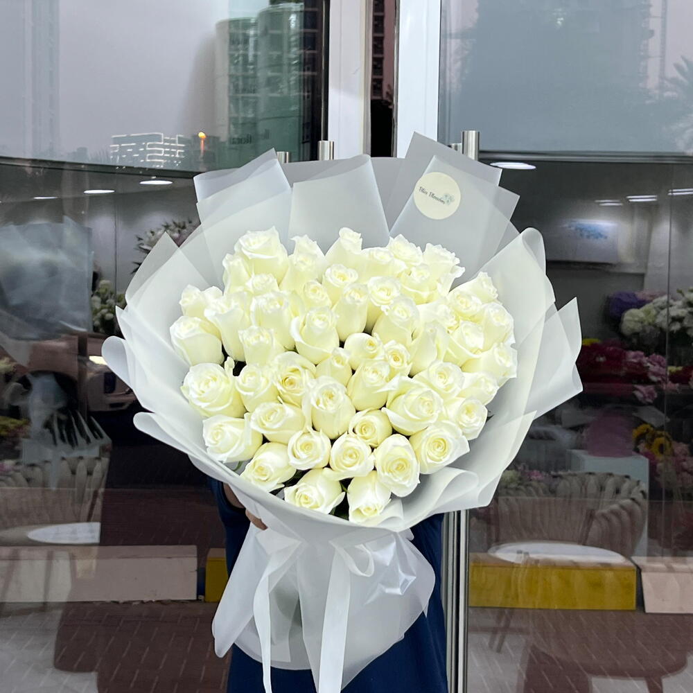 Immerse in the ethereal beauty of our Mono Bouquet, meticulously handcrafted with 51 pristine white roses. Each rose symbolizes purity and innocence, making it the perfect token of your heartfelt emotions. This timeless cluster of blooming elegance enhances any occasion, instantly adding a touch of sophistication and enchantment.
