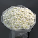 This large, dome-shaped bouquet is designed for maximum visual impact through repetition and volume. Unlike the previous mixed bouquet, this arrangement focuses on a single flower type to create a textured, carpet-like surface. Minimalist Wrapping: The flowers are encased in layers of semi-translucent frosted white film. This choice complements the monochromatic theme and allows the bouquet to feel like a singular, glowing object.