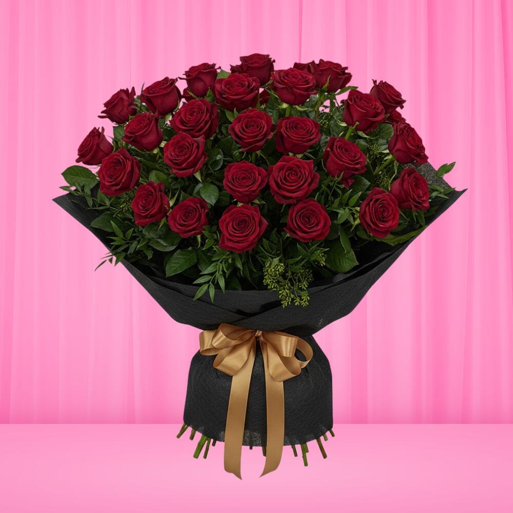 Celebrate love in its purest form with our Timeless Love Bouquet, featuring lush red roses elegantly wrapped in black paper and adorned with a luxurious gold satin ribbon. A stunning expression of passion, devotion, and admiration — perfect for anniversaries, proposals, or any romantic occasion.
