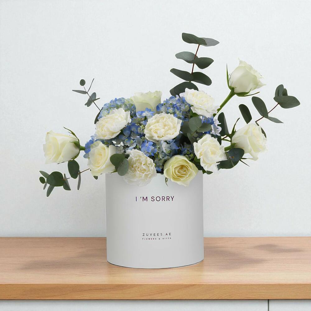 Beautifully arranged in a premium presentation box, this soothing floral composition is the perfect way to say “I’m sorry” and reconnect with those who matter most.