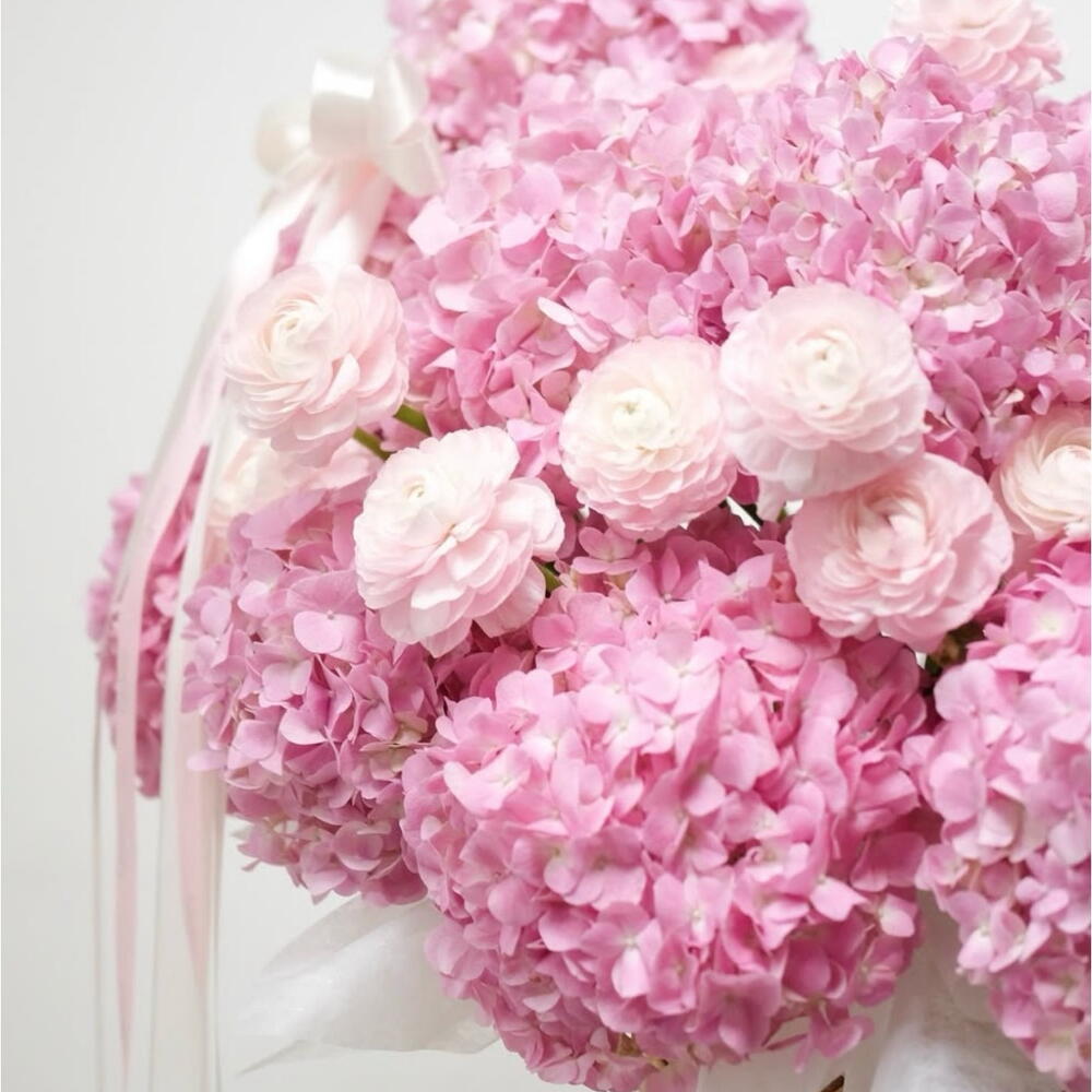 pink hydrangea - 25 pcs pink rununculus - 20 pcs