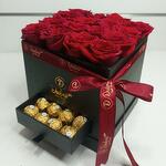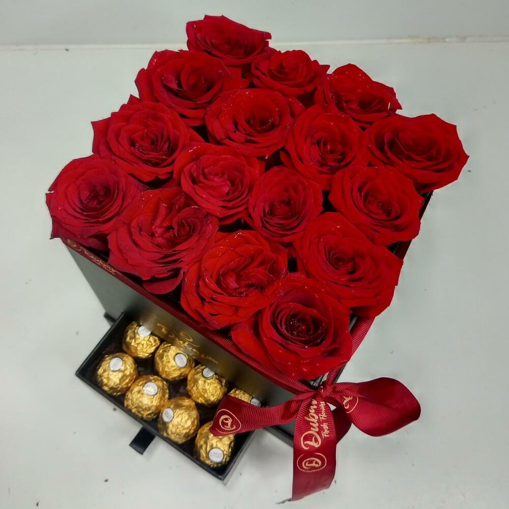 Red rose - 16 pcs Box - 1 pcs Chocolate - 16 pcs