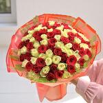 Celebrate the beauty of love and devotion with the True Love Bouquet, an exquisite arrangement of 50 vibrant red roses and 50 pure white roses. This luxurious bouquet perfectly balances passion and elegance, making it an unforgettable gift for anniversaries, birthdays, engagements, or to say “I love you” in the most timeless way. The rich red roses symbolize deep affection and desire, while the pristine white roses represent sincerity, respect, and new beginnings. Hand-wrapped in bold orange-toned paper, this bouquet commands attention and admiration. Care Recommendations: To ensure your roses stay fresh and beautiful, trim the stems at a diagonal angle every two days and place them in a clean vase filled with fresh water. Replace the water daily and remove any leaves below the waterline to prevent bacteria buildup. Keep the bouquet away from direct sunlight, heat sources, and drafts to prolong its vibrancy and fragrance.