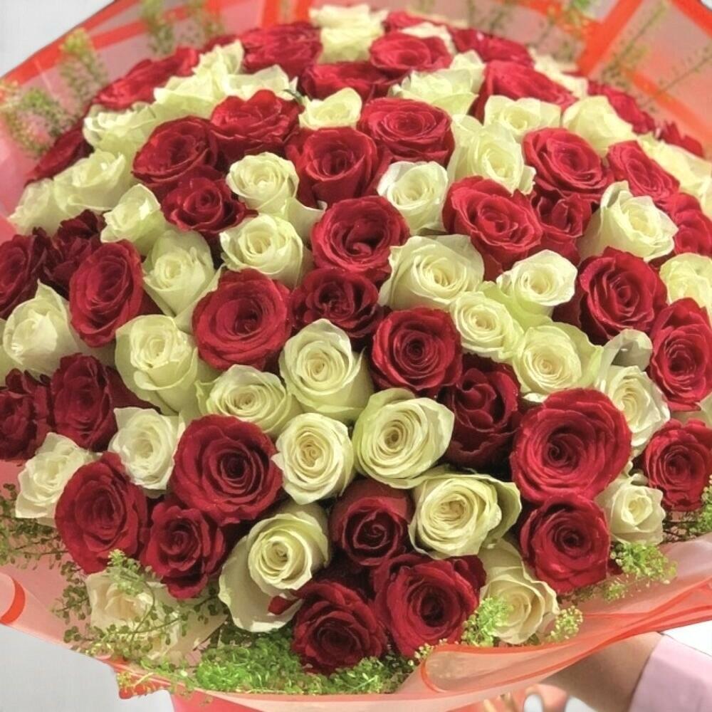 Celebrate the beauty of love and devotion with the True Love Bouquet, an exquisite arrangement of 50 vibrant red roses and 50 pure white roses. This luxurious bouquet perfectly balances passion and elegance, making it an unforgettable gift for anniversaries, birthdays, engagements, or to say “I love you” in the most timeless way. The rich red roses symbolize deep affection and desire, while the pristine white roses represent sincerity, respect, and new beginnings. Hand-wrapped in bold orange-toned paper, this bouquet commands attention and admiration. Care Recommendations: To ensure your roses stay fresh and beautiful, trim the stems at a diagonal angle every two days and place them in a clean vase filled with fresh water. Replace the water daily and remove any leaves below the waterline to prevent bacteria buildup. Keep the bouquet away from direct sunlight, heat sources, and drafts to prolong its vibrancy and fragrance.