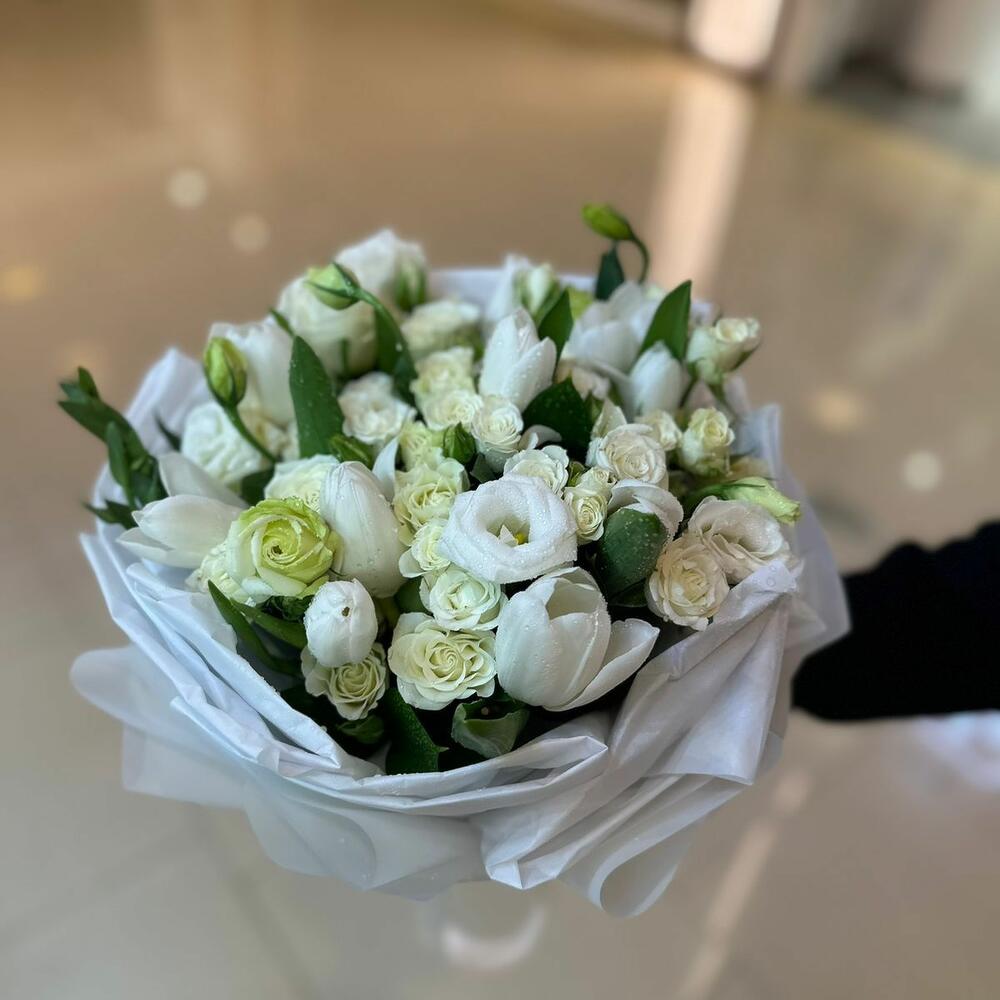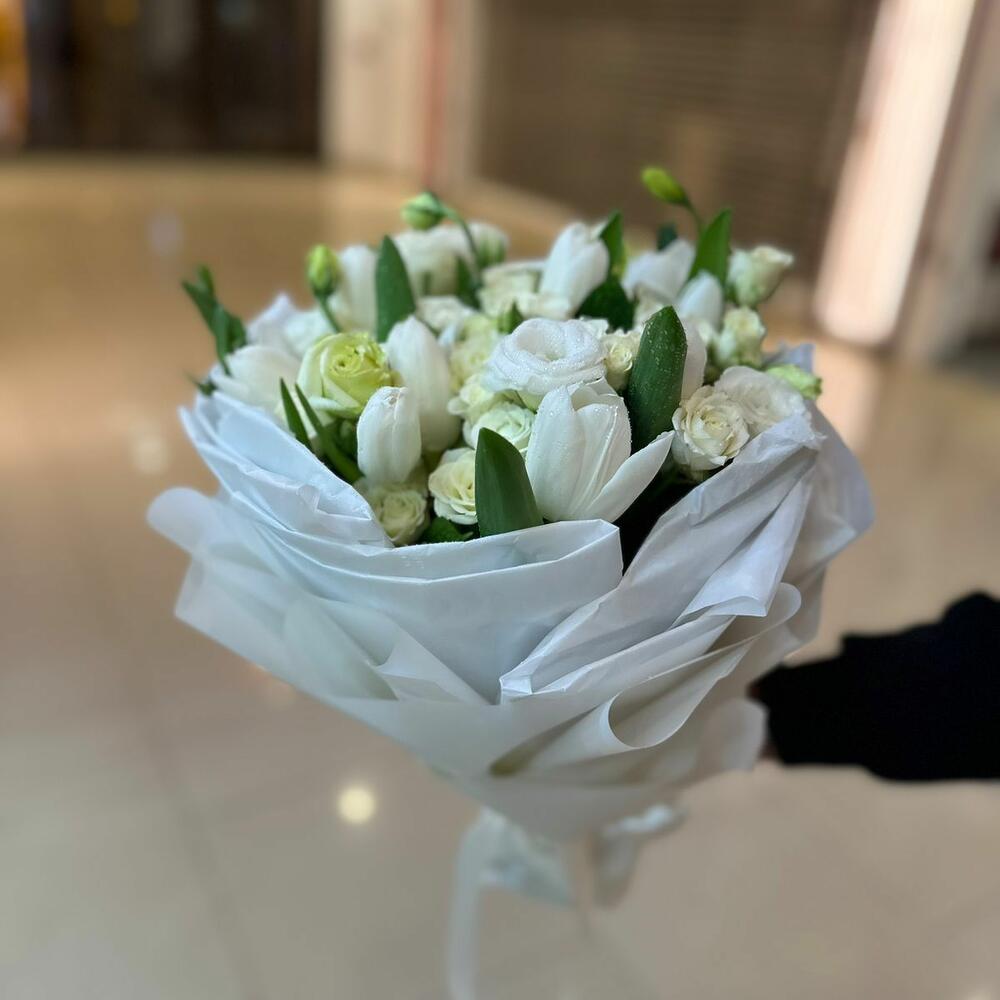 Freesia - 5 pcs tulip white - 10 pcs nice warpping papper - 5 pcs