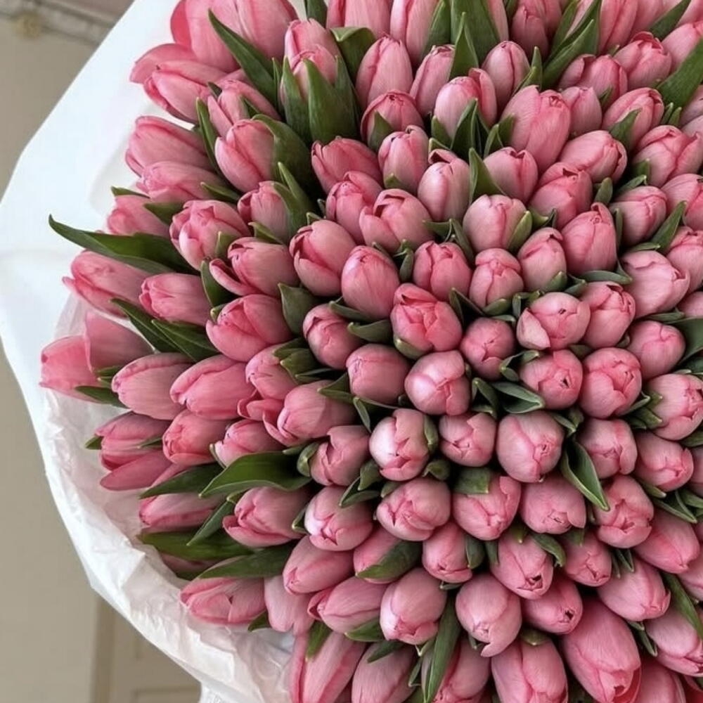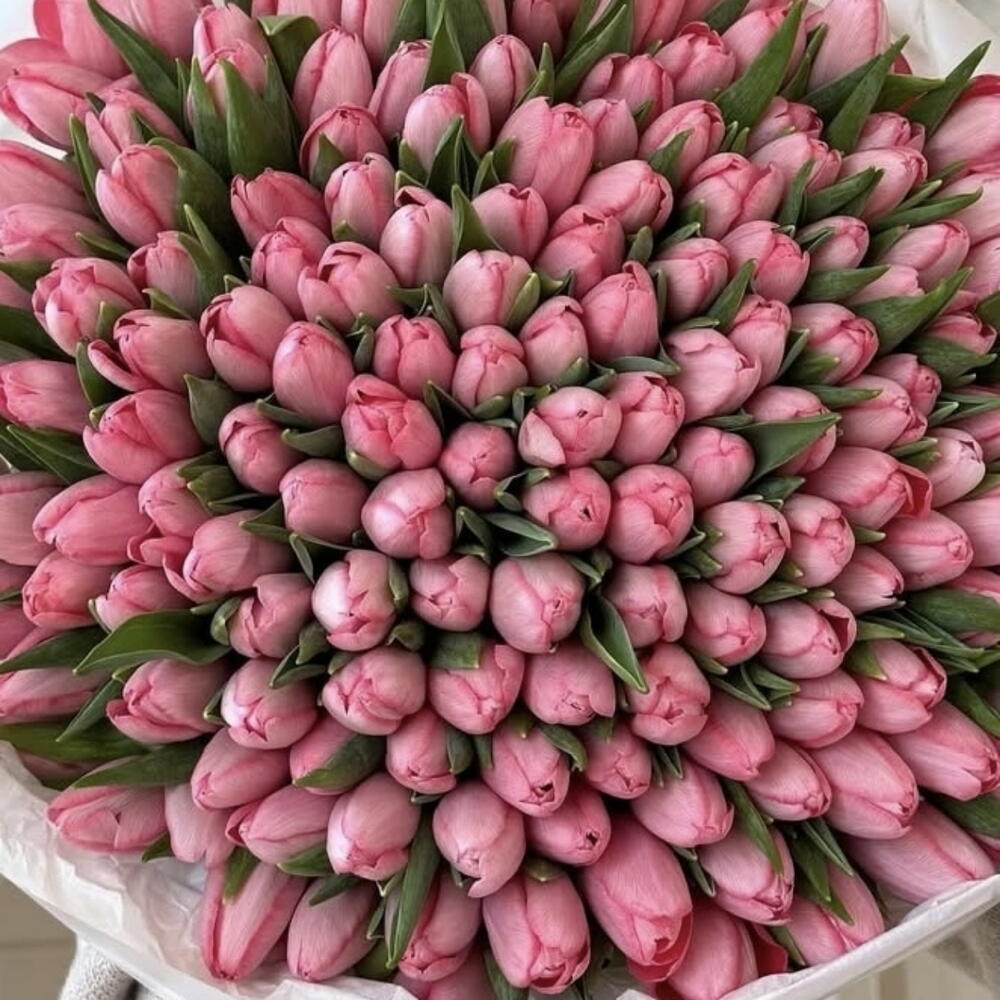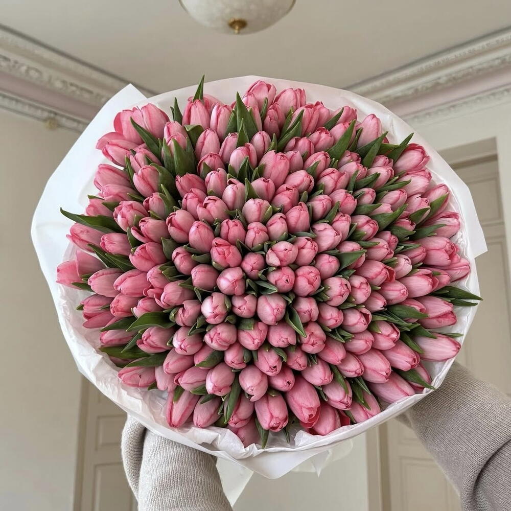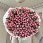 wrapping white - 5 pcs ribbon white - 2 pcs dark pink tulips - 119 pcs