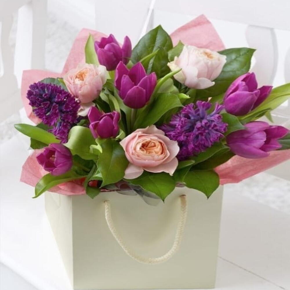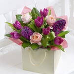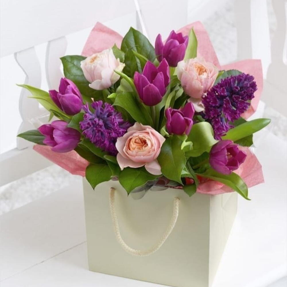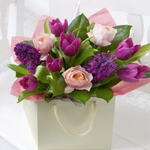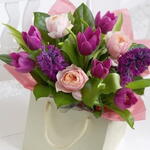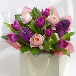 garden rose - 3 pcs wrapping paper - 4 pcs purple tulips - 6 pcs hyacinth purple - 2 pcs