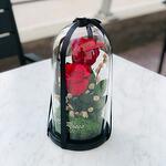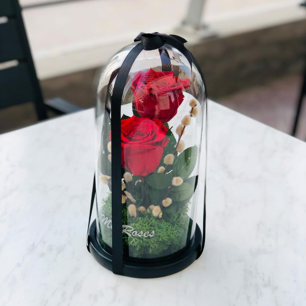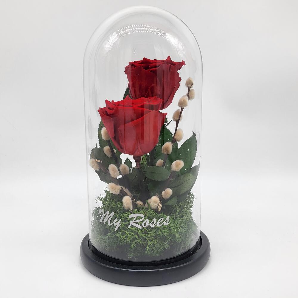 glass dome - 1 pcs red forever roses - 2 pcs