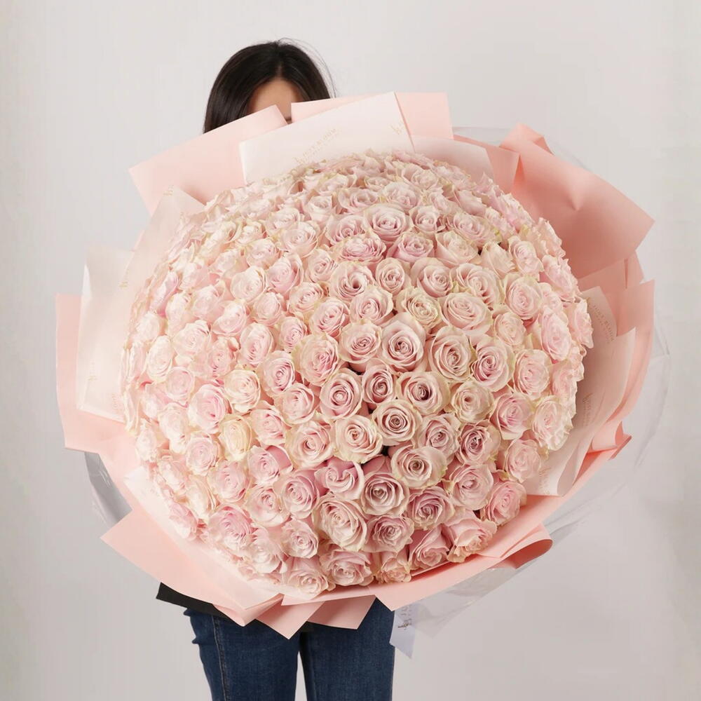 Valentina – 101 Soft Pink Roses | Legendary Luxury Bouquet A bouquet as timeless and elegant as its name — Valentina is a celebration of love, beauty, and sophistication. This Valentina Bouquet features 101 premium Ecuadorian soft pink roses, each hand-selected for its perfect bloom, delicate hue, and layered petals. Arranged into a grand, dome-shaped display, the bouquet exudes luxury, romance, and timeless elegance, leaving a lasting impression on any recipient. Inspired by the classic elegance and passion of its legendary namesake, Valentina transforms every moment into a poetic and unforgettable experience. Each rose is unique, making this arrangement a one-of-a-kind masterpiece. ✨ Perfect for: Grand romantic gestures — anniversaries, proposals, Valentine’s Day Milestone celebrations — birthdays, achievements, or life events Luxury gifting — impress clients, partners, or loved ones with elegance Statement décor — weddings, gala events, or home centerpieces A true icon in pink, Valentina combines artistry, beauty, and sophistication into a legendary floral masterpiece.