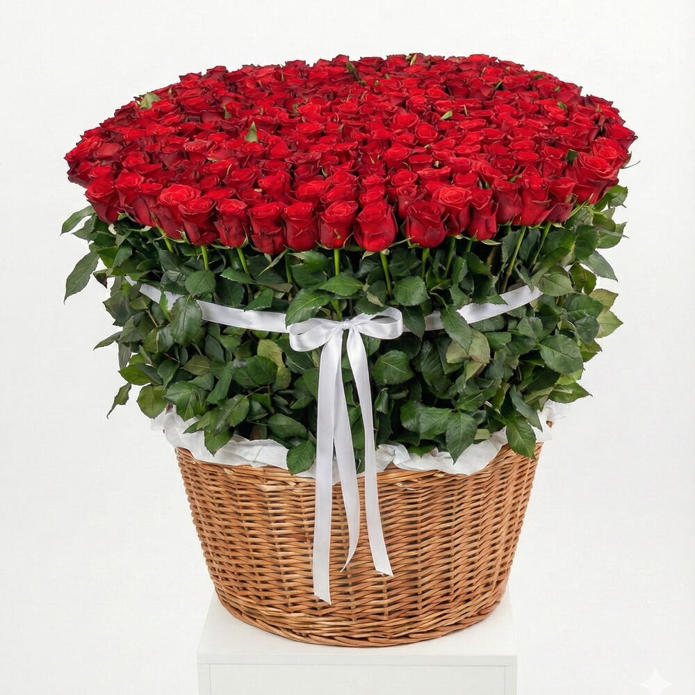 Two hundred and one premium red roses, arranged in a grand basket to say everything you feel—without saying a thing. Bold, intense, and unmistakably romantic, this basket is designed for love that needs no explanation. Perfect for Valentine’s Day, anniversaries, or moments when subtlety simply won’t do. Because some gestures