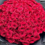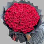 Experience the timeless beauty and elegance of this stunning, hand-tied bouquet, featuring approximately 101 fresh, vibrant red roses. This arrangement embodies passion, temperament, and strong love, making it an ideal gift for any special occasion or heartfelt gesture.
