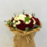 Eucalyptus - 10 pcs hydrengea green - 3 pcs hydrengea white - 3 pcs red roses - 20 pcs white roses - 20 pcs