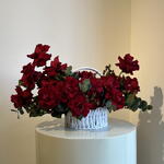 This exquisite arrangement of 20 elegant red roses, delicately paired with 8 sprigs of fragrant eucalyptus, is beautifully nestled within a rustic basket. The added touch of 5 delightful sprigs of hypericum gives this floral ensemble a unique depth, making it a perfect gift for any occasion. Brighten up your loved ones day with this enchanting floral basket that effortlessly marries classic beauty and woodland whimsy.