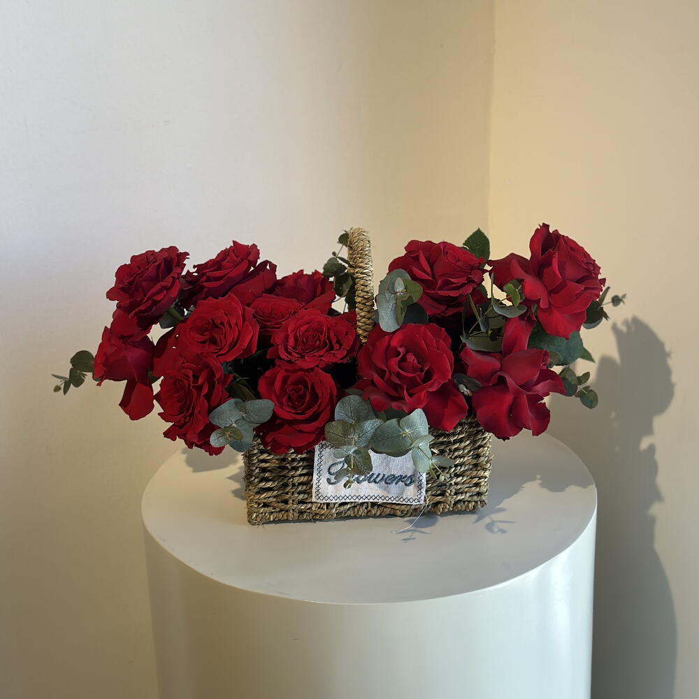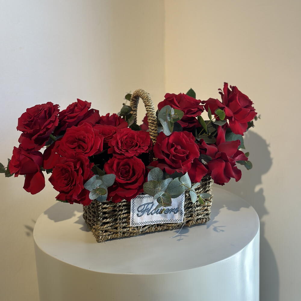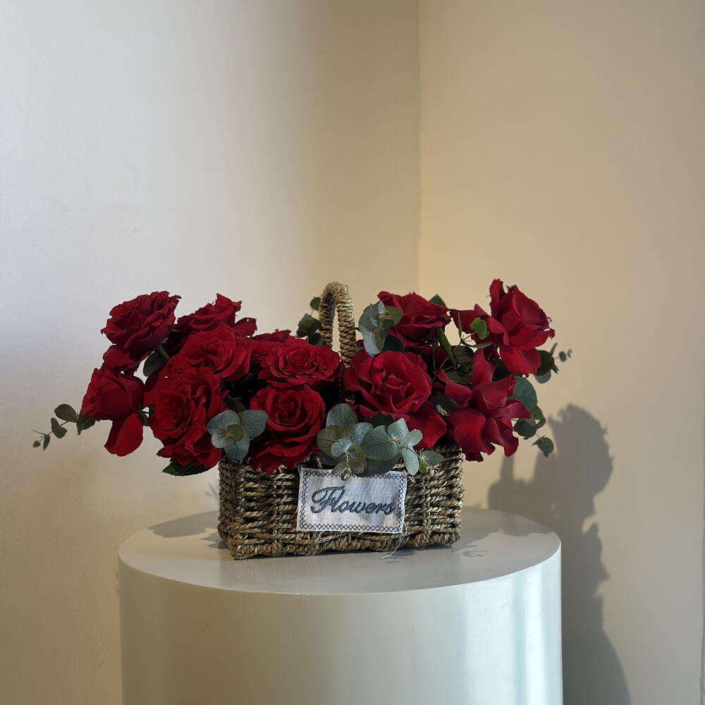 Eucalyptus - 12 pcs red roses - 16 pcs