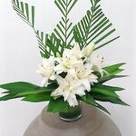 Elegant White Lily Vase Arrangement with Tropical Greens