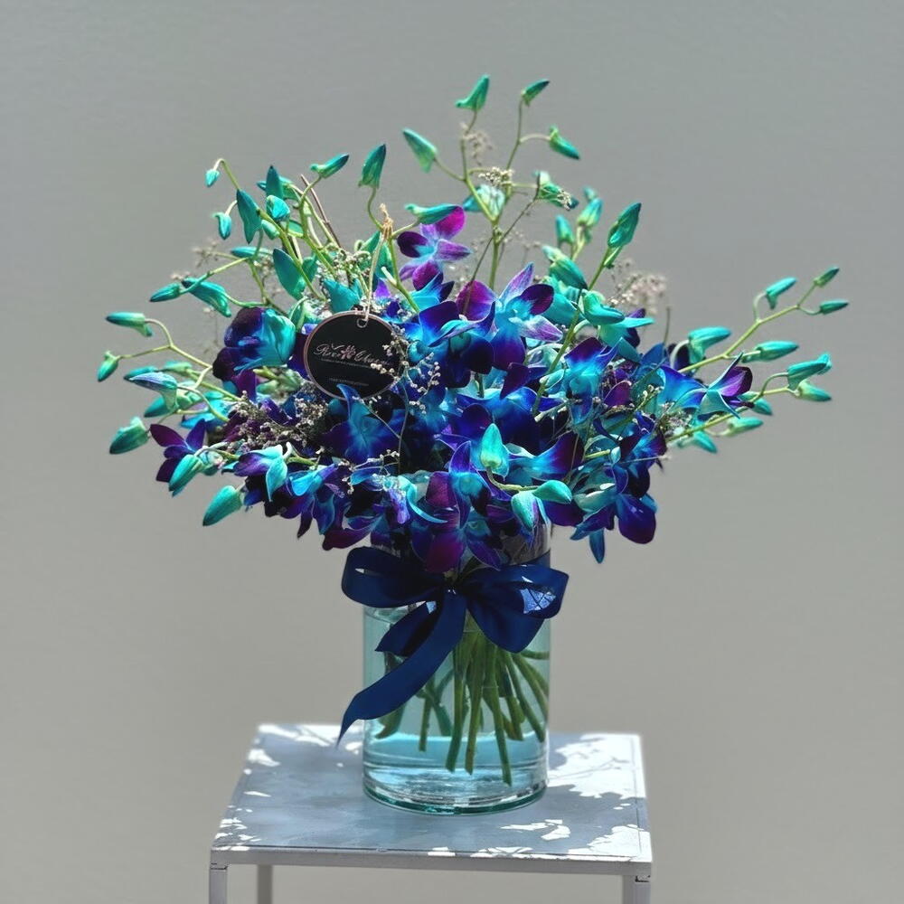 Immerse yourself in pure sophistication with our Blue Orchid Elegance Arrangement, featuring 21 vibrant stems of blue dendrobium orchids. Each bloom radiates beauty and serenity, artfully styled in a sleek glass cylinder vase adorned with lush massangeana leaves for a contemporary touch. A striking gift for corporate events, birthdays, anniversaries, or luxury home décor, this arrangement is more than flowers—it’s a statement of style and refined taste. ✨ Why It’s Perfect 21 premium blue dendrobium orchids 💙 Arranged in a sleek, modern glass cylinder vase Accented with lush, tropical massangeana leaves 🌿 Ideal for luxury gifting and décor in Dubai 👉 Order today with same-day delivery in Dubai UAE to surprise loved ones or elevate your space with a touch of orchid luxury. 🌟