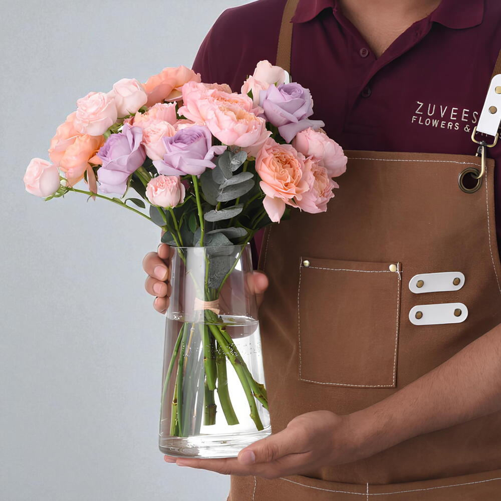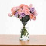 A stunning fusion of deep purple and warm orange blooms, the Violet Ember in a glass vase captures the glowing essence of a sunset, radiating both elegance and warmth