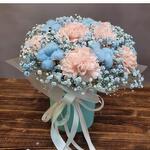 pink carnation - 9 pcs gypsophila blue - 4 pcs blue cotton try flower - 4 pcs