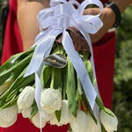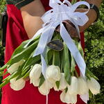 A bouquet of 21 white tulips exudes elegance and simplicity, symbolizing purity, peace, and new beginnings. These fresh, pristine blooms arranged together create a stunning visual display, perfect for conveying heartfelt emotions and adding a touch of sophistication to any occasion.