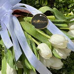 Ribbon - 1 pcs wrapping paper - 1 pcs white tulips - 21 pcs