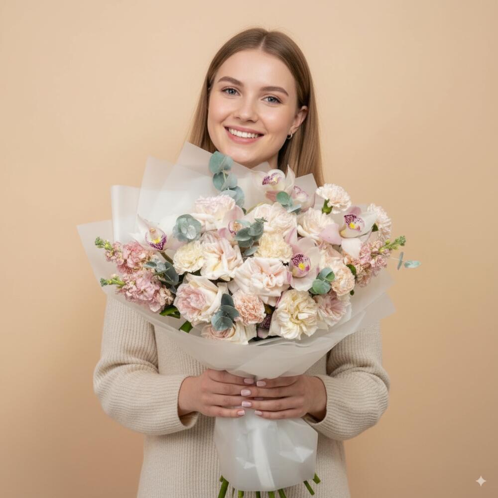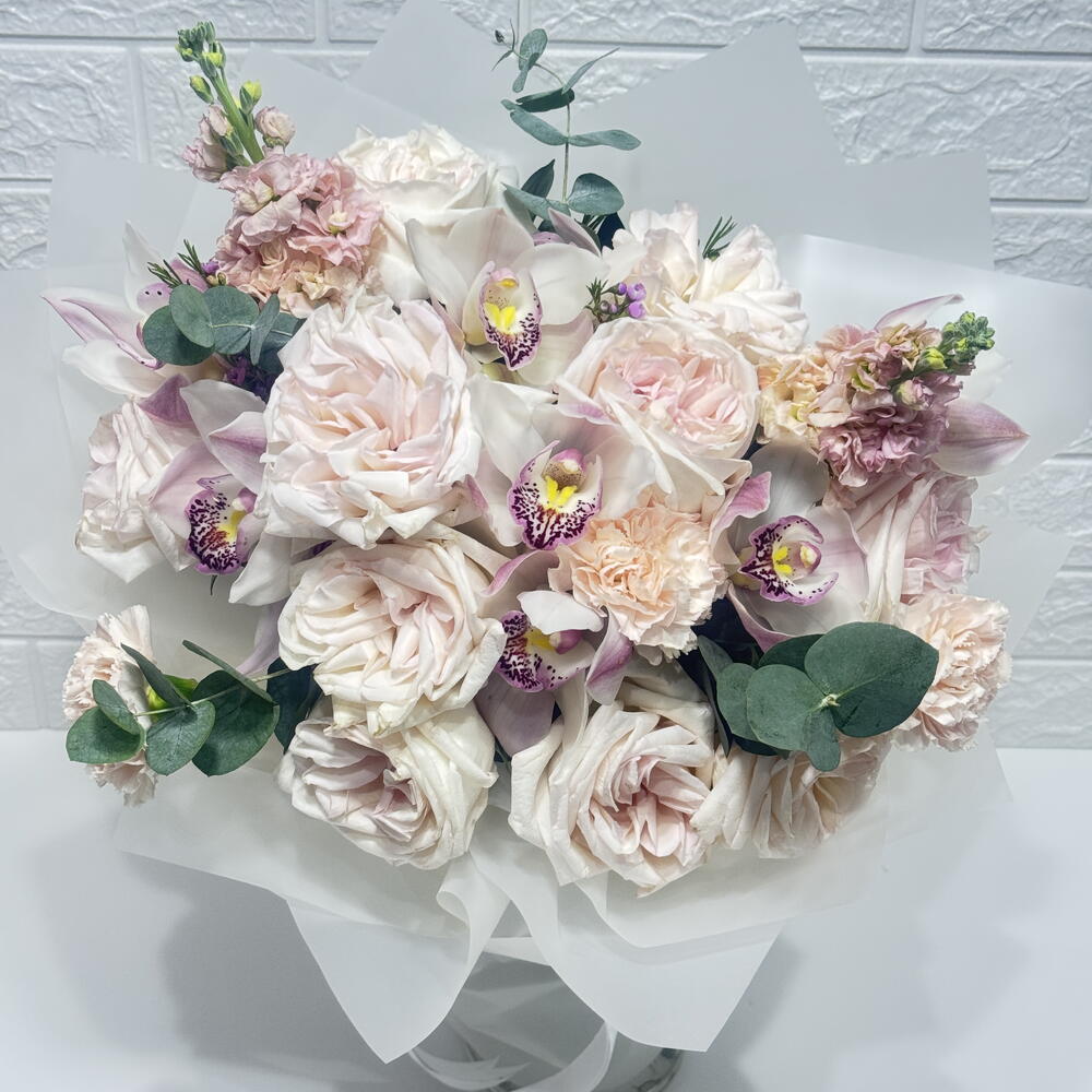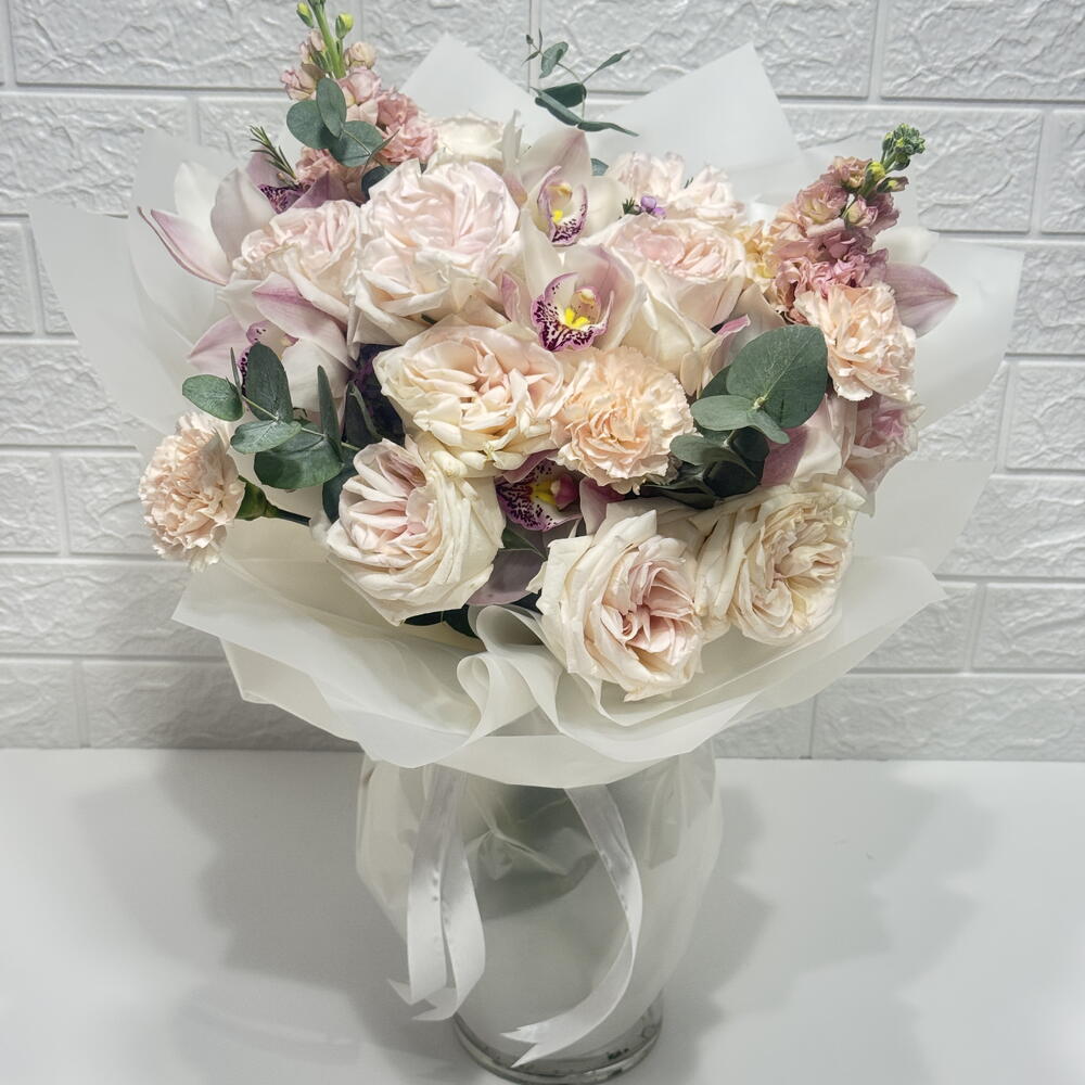 carnation - 4 pcs cymbidium - 7 pcs mathiola - 2 pcs ohara rose - 9 pcs