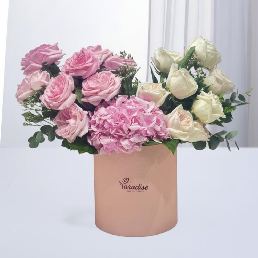 Hydrangea - 1 pcs pink box - 1 pcs ohara rose - 16 pcs