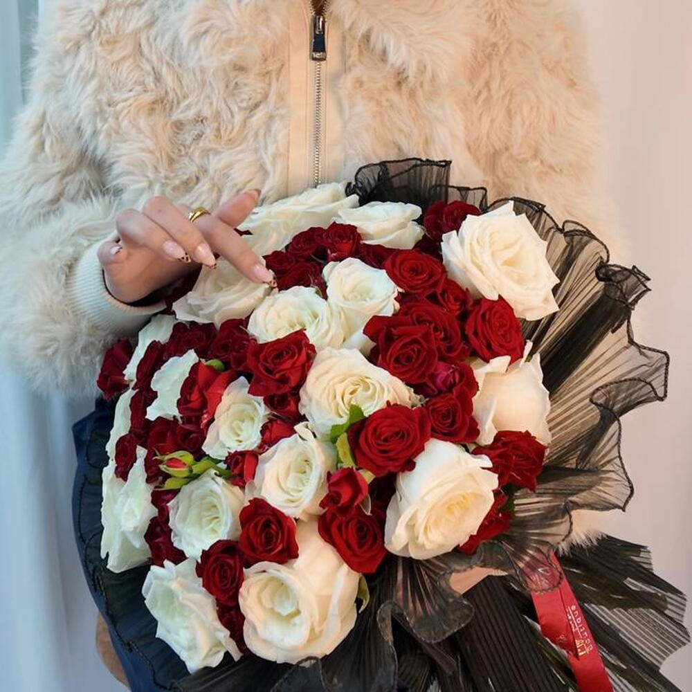 red roses - 25 pcs white roses - 30 pcs