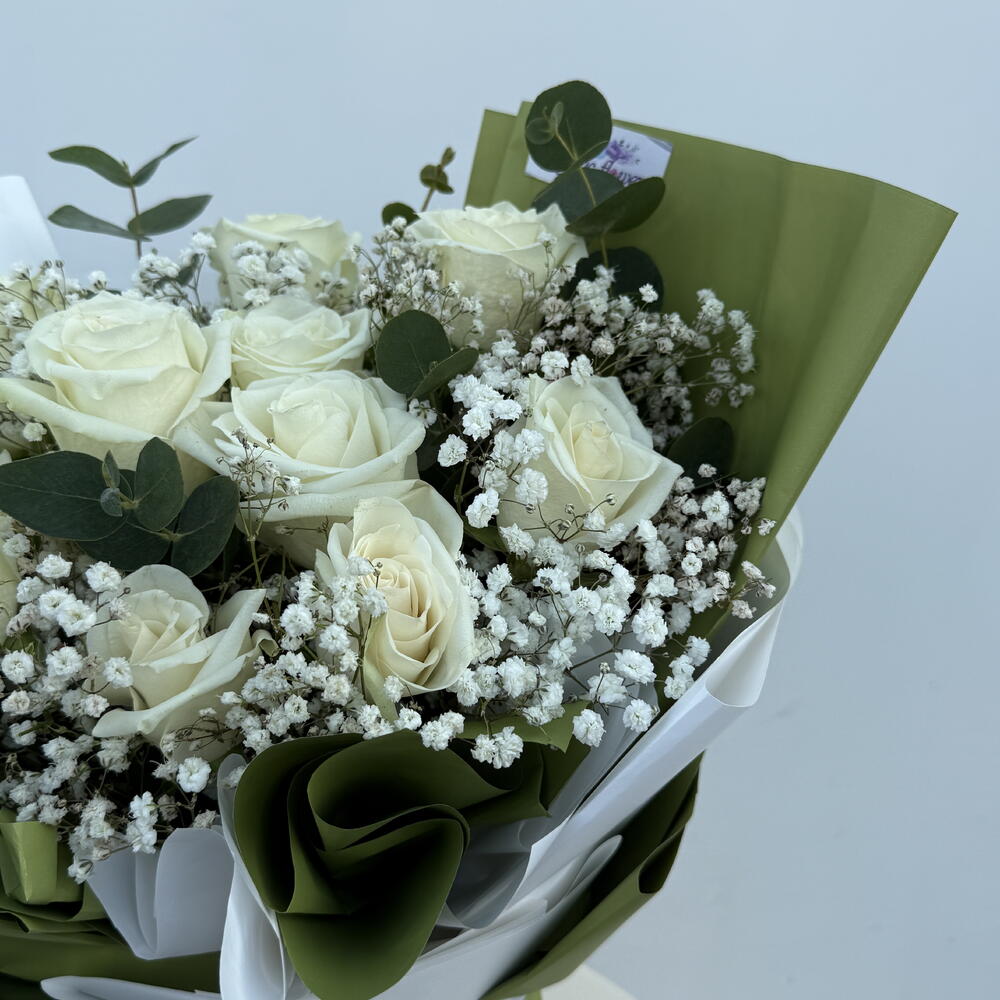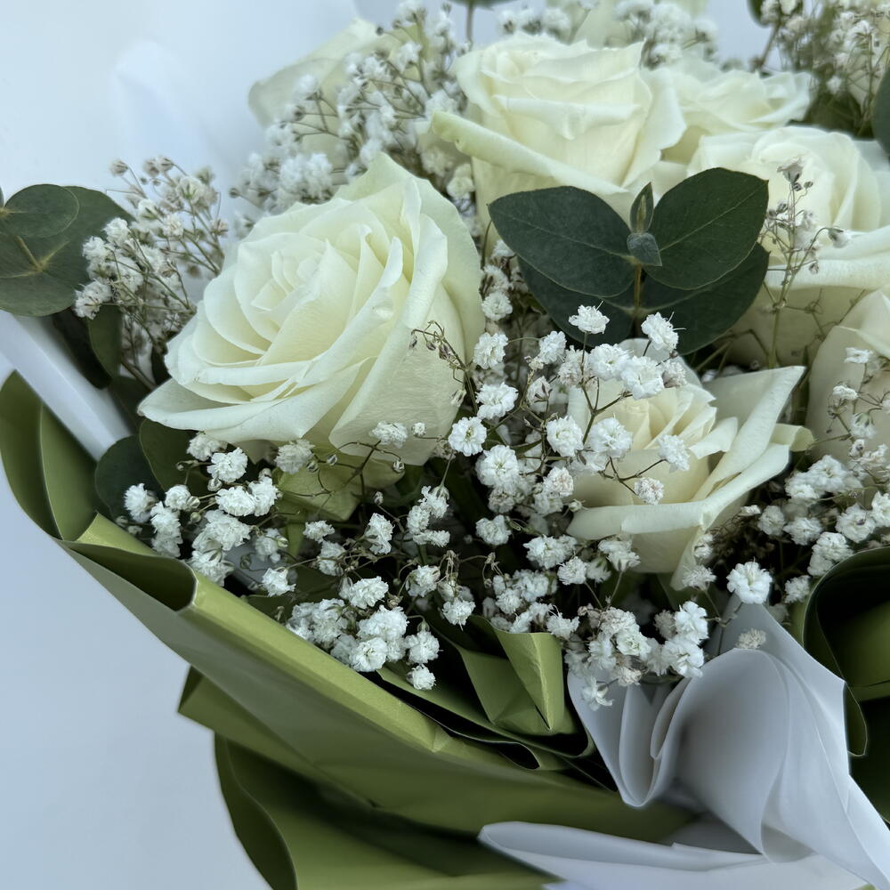 Pure, elegant, and effortlessly timeless — White Bliss is a classic white roses bouquet made for moments that deserve grace. Wrapped in fresh green and white styling with a satin ribbon, this fresh flowers bouquet features premium white roses (classic long-stem roses) beautifully paired with delicate gypsophila (baby’s breath) and fresh greenery for a soft, airy finish. Simple yet luxurious, it’s a premium flowers bouquet that looks clean, modern, and deeply meaningful. Perfect as a Birthday Bouquet and a tasteful choice for birthday flowers and flowers for birthday, White Bliss also shines as a refined congratulations bouquet, a romantic anniversary gift, or an elegant wedding flower bouquet. If you’re looking for a premium quality flowers arrangement that feels unique, trending, and unforgettable, this fresh bouquet is a top pick for the best bouquet in Dubai.