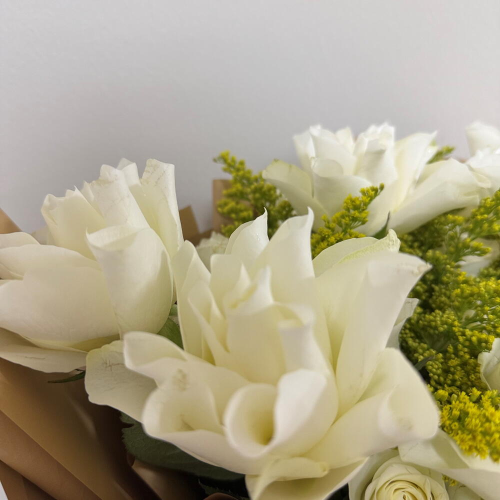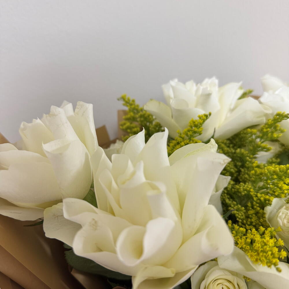 This flower bouquets contains 30 Stems White Roses Solidago Fillers 10 stems
