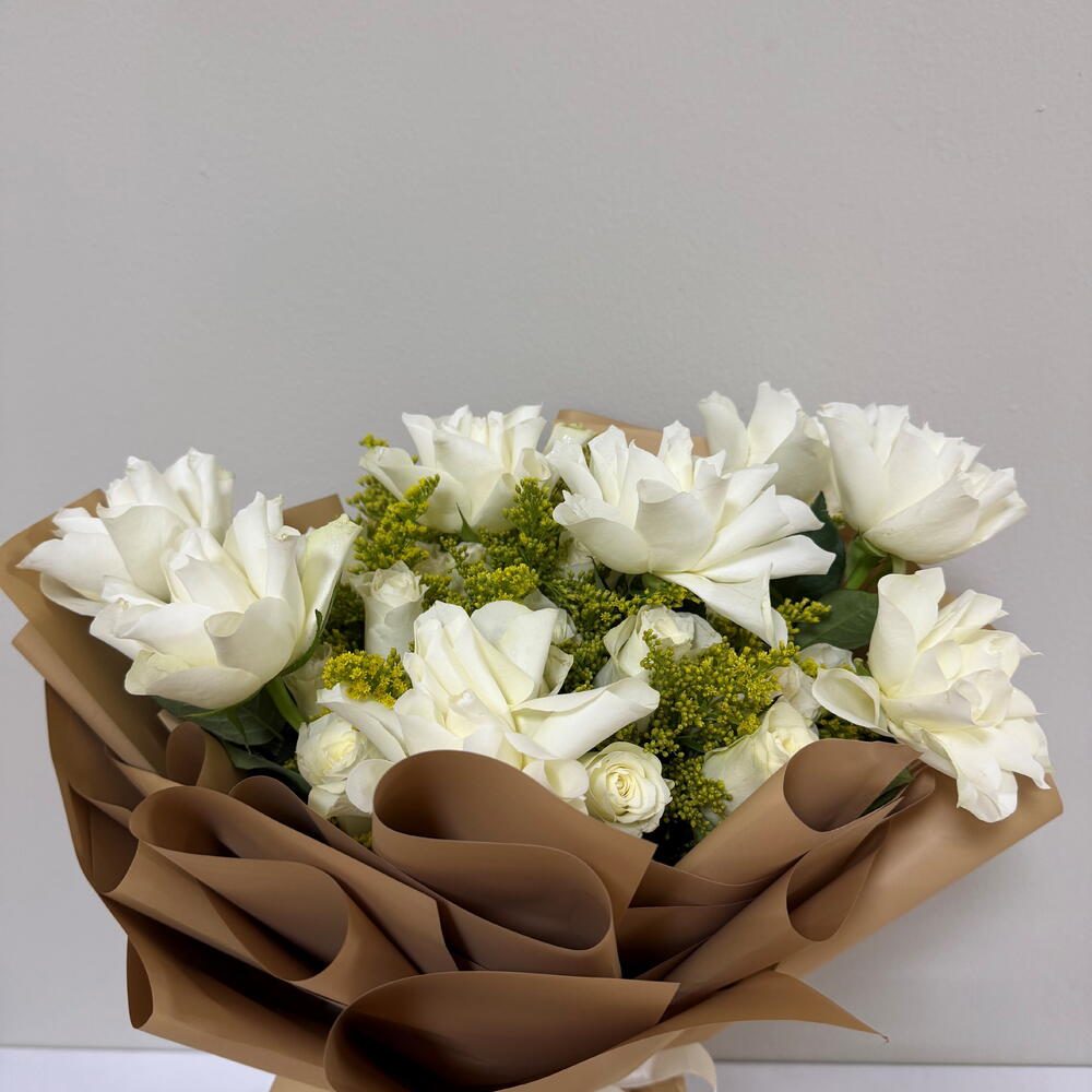 solidago fillers - 10 pcs white roses - 30 pcs
