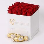 Ferrero rocher - 6 pcs red roses - 20 pcs arranged in a white square box - 1 pcs
