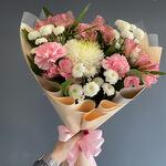 pink carnations - 2 pcs pink alstroemeria - 4 pcs white wrapping - 3 pcs white daco - 1 pcs chandini white - 3 pcs