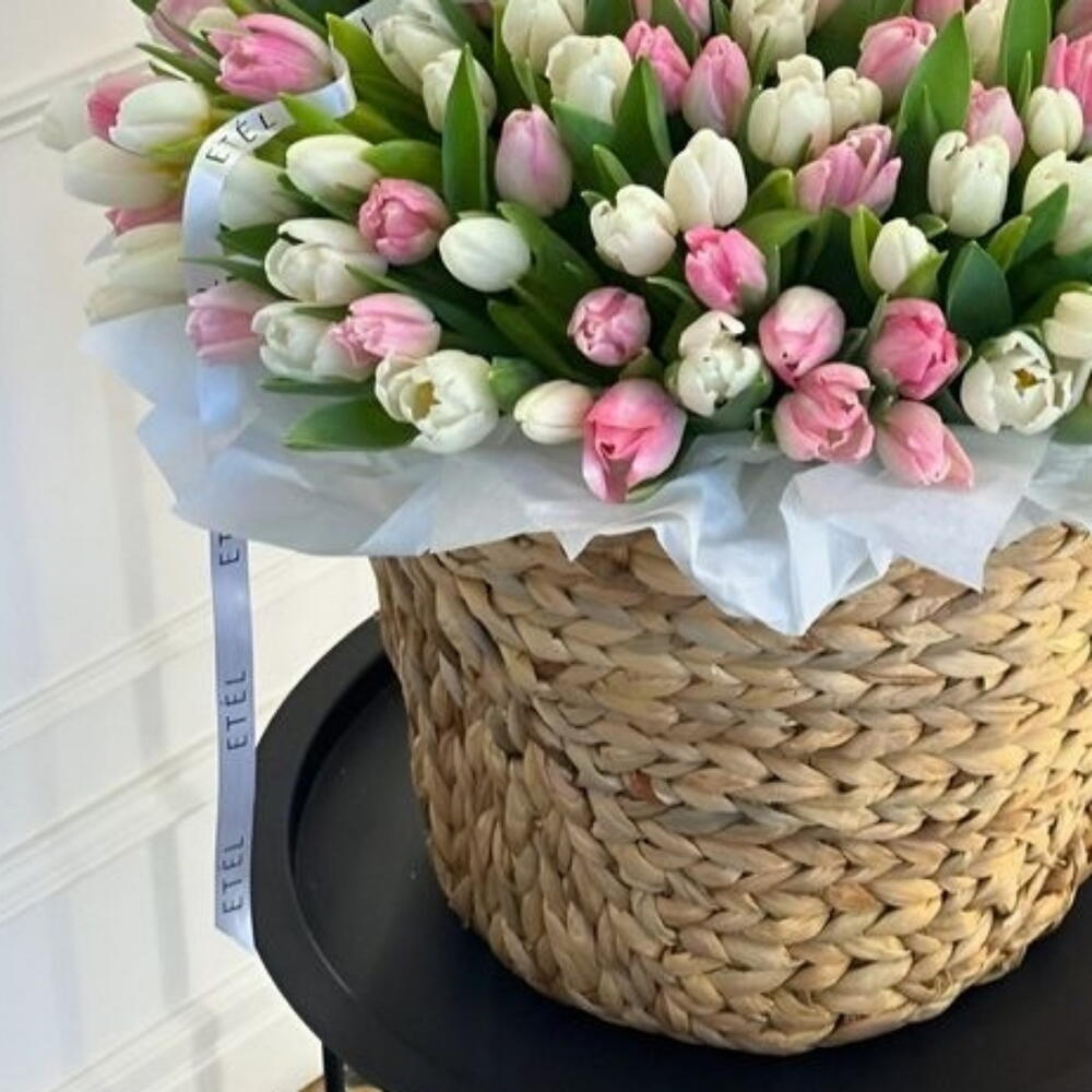 Basket - 1 pcs tulip white - 75 pcs tulip pink - 76 pcs