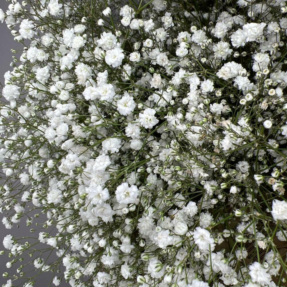 The gypsophila is a spriggy plant with a number of small, odourless, snow-white inflorescences. It goes well with most flowers, making it popular with florists as a bouquet decoration. Delicate and airy, gypsophilas will give any flower arrangement a festive and lush look. FLOWER CARE TIPS To protect flowers from bacteria, florists recommend removing all foliage from their stems before placing them in water. FLORAL FACTS After drying, the gypsophila turns into a dried flower, without losing its shape or colour.