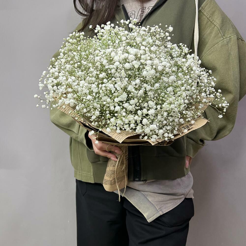 White gypsophila in kraft paper
