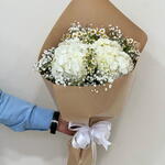 A stunning arrangement of fresh Hydrangea blooms in white colour , beautifully wrapped in premium kraft paper and finished with a ribbon. Accented with delicate Baby’s Breath and Chamomile daisies, this bouquet exudes elegance and sophistication. Perfect for birthdays, anniversaries, or simply to brighten someone’s day, this luxurious bouquet symbolizes gratitude, grace, and heartfelt emotions. Its soft textures and soothing colors make it an ideal gift for any special occasion. 🎁 Perfect For: Birthday surprises | Anniversaries | Get well soon | Thank you gifts